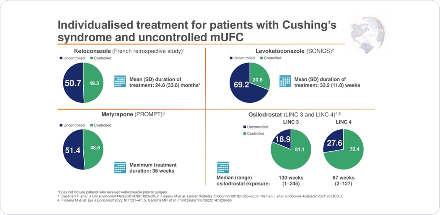 *Lacroix A, Gu F, Gallardo W, et al. Efficacy and safety of once-monthly pasireotide in Cushing's disease: a 12 month clinical trial. Lancet Diabetes Endocrinol 2018;6:17e26.