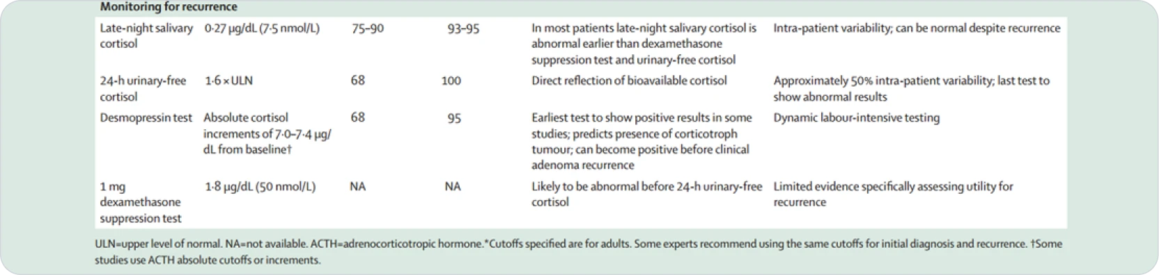 bConsider psychiatric disorders, alcohol use disorder, pregnancy, severe obesity, polycystic ovary syndrome, uncontrolled diabetes, anorexia, malnutrition, excessive exercise, illness or surgery, high corticosteroid-binding globulin state, glucocorticoid resistance.3