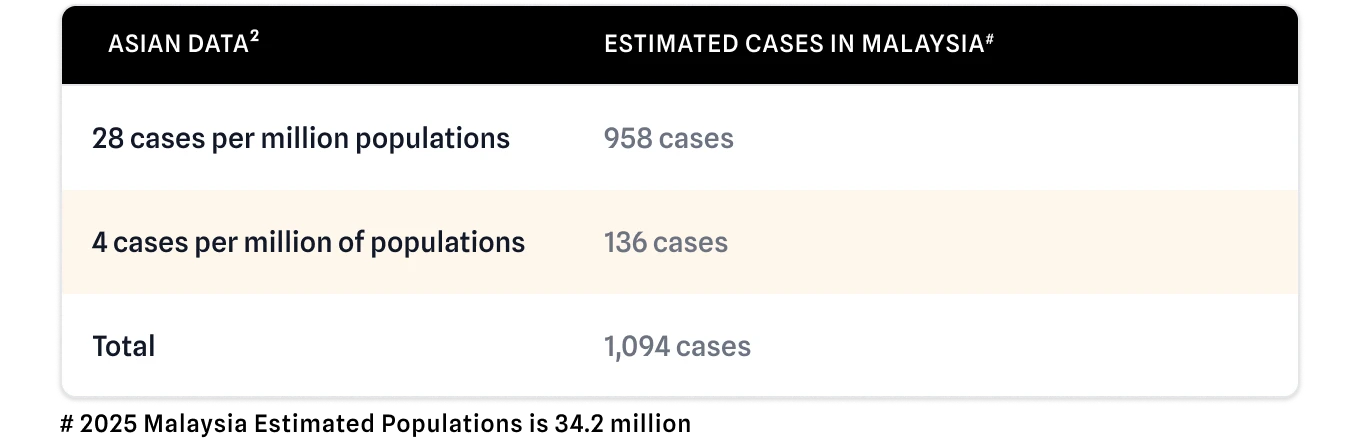 Prevalence Mean age of diagnosis 40-50 years old2-4